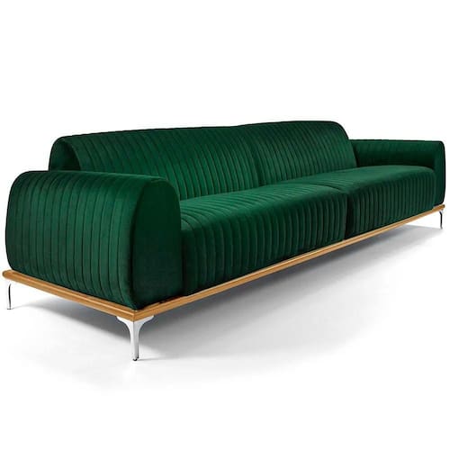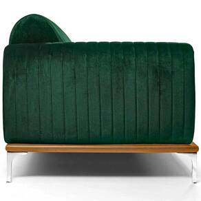 Características TécnicasEstrutura: Madeira reflorestada de eucalipto, com partes em MDF e OSB robustez e sustentabilidadeAssento: Espuma D-26 HR sobre percintas elásticas conforto firme e duradouroEncosto: Espuma D-23 sobre percintas elásticas apoio ergonômicoBraços: Espuma D-23 maciez e suporteRevestimento: Veludo visual sofisticado e fácil de manterBase/Pés: Madeira de eucalipto envernizada com pés em alumínio com pintura epóxiCor da Base/Pés: Castanho Natural / CromadoPeso Suportado: Até 120 kg por assento