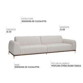 Características TécnicasEstrutura: Madeira reflorestada de eucalipto, com partes em MDF e OSB robustez e sustentabilidadeAssento: Espuma D-26 HR sobre percintas elásticas conforto firme e duradouroEncosto: Espuma D-23 sobre percintas elásticas apoio ergonômicoBraços: Espuma D-23 maciez e suporteRevestimento: CoranoBase/Pés: Madeira de eucalipto envernizada com pés em alumínio com pintura epóxiCor da Base/Pés: Castanho Natural / Ouro FoscoPeso Suportado: Até 120 kg por assento