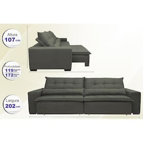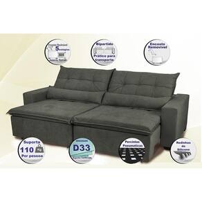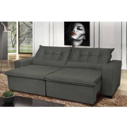 Sofá Montenegro 2,02 Mts Retrátil, Reclinável Com Molas E 2 Almofadas Lombar Tecido Suede Cinza Decore sua sala de estar com sofisticação e qualidade, sem abrir mão do conforto. Moderno e aconchegante, o Sofá Montenegro é produzido com madeira maciça (eucalipto) e possui design moderno com traços retos. Ótima opção para sua sala ou até mesmo escritório. O que o torna especial são seus assentos retráteis e seus encostos reclináveis que proporcionam uma acomodação extremamente confortável. Desfrutar de um bom filme na sala jamais será como antes!