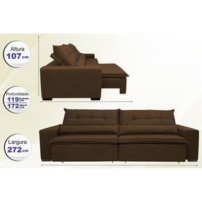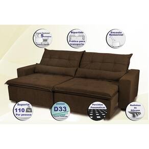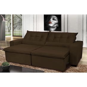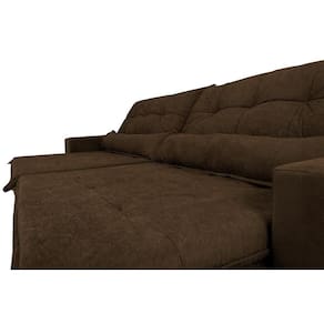 Sofá Montenegro 2,72 Mts Retrátil, Reclinável Com Molas E 2 Almofadas Lombar Tecido Suede Café Decore sua sala de estar com sofisticação e qualidade, sem abrir mão do conforto. Moderno e aconchegante, o Sofá Montenegro é produzido com madeira maciça (eucalipto) e possui design moderno com traços retos. Ótima opção para sua sala ou até mesmo escritório. O que o torna especial são seus assentos retráteis e seus encostos reclináveis que proporcionam uma acomodação extremamente confortável. Desfrutar de um bom filme na sala jamais será como antes!
