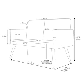 Seu estofado em tecido suede 100% poliéster garante um toque macio e sofisticado, enquanto a espuma D-23 de alta densidade proporciona o conforto ideal para seu dia a dia. A estrutura em madeira de eucalipto de reflorestamento oferecer excelente durabilidade. Além disso, conta com percintas elásticas no assento. Os  pés palito, trazem charme retrô ao ambiente deixando ainda mais elegante.
