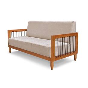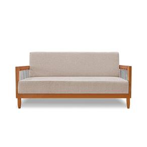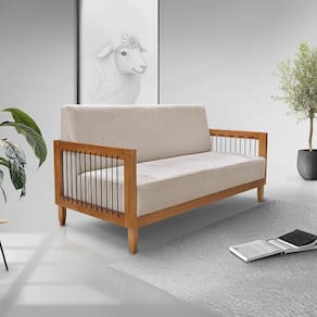 Sofá Namoradeira 2 Lugares Base de Madeira Daia Linho Rústico Areia - Loja Sheep - Bege Médio