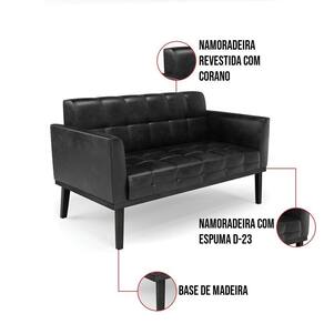 Você gosta de colecionar vários momentos memoráveis com sua família e amigos? Que tal recebê-los, com móveis de altíssima qualidade que só a D'Rossi tem? O Sofá Namoradeira Elisa é adequado para você! Seu design retrô é a grande tendência do momento. Pode ser utilizado em diversos espaços da casa, em salas, hall de entrada, quartos, cozinhas, varanda, sacada, escritório, dentre outros. Contém as seguintes características: A estrutura é feita de madeira de Eucalipto 100% de reflorestamento, e a Base de Madeira Preto, além de ser resistente e durável, suporta em média até 120 kg. Assento, encosto e braços, contém enchimento de espuma D-23 e é estofada em tecido Corano, no tom Preto, que oferece muito conforto e resistência ao sentar, com aquela sensação de maciez e aconchego. Possui também, detalhes de costura no encosto e assento, resultando em um acabamento impecável, conferindo muito mais valor e elegância ao seu espaço. Para complementar a decoração com esse lindo Sofá Namoradeira, a dica é utilizar mantas, almofadas ou vasinho de flor. E pronto, seu cantinho estará perfeito para descansar e relaxar! Aqui, você encontra várias opções, para que seus amigos e familiares se sintam acolhidos. Garanta já seu Sofá Namoradeira.
