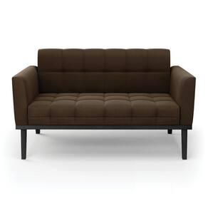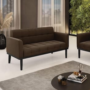 Sofá Namoradeira 2 Lugares Base De Madeira Preto Elisa Suede D03 - D'rossi Cor Marrom
