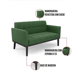 Você gosta de colecionar vários momentos memoráveis com sua família e amigos? Que tal recebê-los, com móveis de altíssima qualidade que só a D'Rossi tem? O Sofá Namoradeira Elisa é adequado para você! Seu design retrô é a grande tendência do momento. Pode ser utilizado em diversos espaços da casa, em salas, hall de entrada, quartos, cozinhas, varanda, sacada, escritório, dentre outros. Contém as seguintes características: A estrutura é feita de madeira de Eucalipto 100% de reflorestamento, e a Base de Madeira Preto, além de ser resistente e durável, suporta em média até 120 kg. Assento, encosto e braços, contém enchimento de espuma D-23 e é estofada em tecido Suede, que oferece muito conforto e resistência ao sentar, com aquela sensação de maciez e aconchego. Possui também, detalhes de costura no encosto e assento, resultando em um acabamento impecável, conferindo muito mais valor e elegância ao seu espaço. Para complementar a decoração com esse lindo Sofá Namoradeira, a dica é utilizar mantas, almofadas ou vasinho de flor. E pronto, seu cantinho estará perfeito para descansar e relaxar! Aqui, você encontra várias opções, para que seus amigos e familiares se sintam acolhidos. Garanta já seu Sofá Namoradeira.
