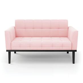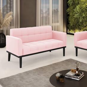 Sofá Namoradeira 2 Lugares Base de Madeira Preto Elisa Suede Rosa Bebê D03 - D`Rossi