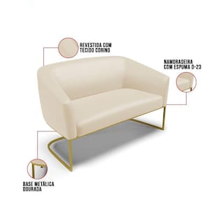 O Sofá Namoradeira 2 lugares Stella é uma peça que combina elegância, conforto e durabilidade. Este Sofá Namoradeira tem um design moderno e sofisticado, com Base Industrial Dourado e revestimento em tecido Corino, que harmonizam com qualquer ambiente. Ele é ideal para sala de estar, recepções, mesa de jantar ou qualquer outro espaço que você queira decorar com estilo e bom gosto. Ele tem uma estrutura em madeira de reflorestamento eucalipto, que garante a resistência e a sustentabilidade do produto. Ele suporta até 120 kg de peso, podendo ser utilizado por pessoas de diferentes biotipos. Ele tem um acabamento reforçado e espuma de qualidade D23, que oferece maciez e aconchego. Tem pés em aço carbono e pintura eletrostática, que protegem o produto contra corrosão e desgaste. Ele tem assento com persintas elásticas, que proporcionam flexibilidade e conforto. O Sofá Namoradeira Stella é um produto de alta qualidade, beleza e funcionalidade. Ele é fácil de transportar, pois tem um peso leve e um tamanho compacto. O Sofá Namoradeira Stella é um produto que vai fazer a diferença na sua decoração e no seu bem-estar. Ele vai trazer charme, conforto e durabilidade para o seu ambiente. Aproveite essa oferta e leve para casa um Sofá Namoradeira de qualidade por um preço incrível. Essa é a sua chance de ter um sofá Namoradeira maravilhoso por um preço imperdível. Corra e garanta seu Sofá Namoradeira 2 lugares antes que acabe o estoque!