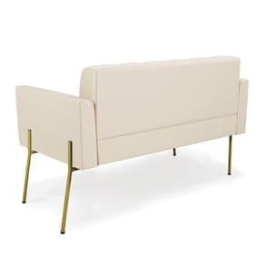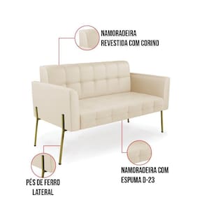 Você gosta de colecionar vários momentos memoráveis com sua família e amigos? Que tal recebê-los, com móveis de altíssima qualidade que só a D'Rossi tem? O Sofá Namoradeira Elisa é adequado para você! Seu design retrô é a grande tendência do momento. Pode ser utilizado em diversos espaços da casa, em salas, hall de entrada, quartos, cozinhas, varanda, sacada, escritório, dentre outros. Contém as seguintes características: A estrutura é feita Madeira de Eucalipto 100% de reflorestamento,Pés de Ferro Dourado que além de ser resistente e durável, suporta em média até 120 kg. Assento, encosto e braços, contém enchimento de espuma D-23 e é estofada em tecido Corino, no tom Bege, que oferece muito conforto e resistência ao sentar, com aquela sensação de maciez e aconchego. Possui também, detalhes de costura no encosto e assento, resultando em um acabamento impecável, conferindo muito mais valor e elegância ao seu espaço. Para complementar a decoração com esse lindo Sofá Namoradeira, a dica é utilizar mantas, almofadas ou vasinho de flor. E pronto, seu cantinho estará perfeito para descansar e relaxar! Aqui, você encontra várias opções, para que seus amigos e familiares se sintam acolhidos. Garanta já seu Sofá Namoradeira.