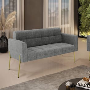 Altura total: 81 cm Largura total: 114 cm Profundidade total: 64 cm Altura do encosto: 36 cm Largura do assento: 96 cm Profundidade do assento: 48 cm Altura do chão ao assento: 45 cm Espessura do assento: 18 cm Tamanho dos pés: 30 cm Espessura do braço: 9 cm Peso: 24 kg