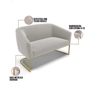 Tem novidades chegando por aqui! Olha só essa nossa inédita Namoradeira Stella Bouclê. Sim, as melhores opções em Namoradeira estão aqui! A Namoradeira Stella Bouclê é para todas as ocasiões, é ideal para você relaxar, assistir tv ou ler um livro, mantendo-o confortável ao longo do dia! Um estofado versátil, que foge do convencional pelo seu design e tecido luxuoso. Seu formato curvo, marcante e sofisticado, oferece conforto de forma excepcional, com aquela sensação de abraço, que deixa o coração quentinho! Desenvolvida com atenção aos detalhes, para atender todas suas expectativas e necessidades. Seu aspecto arredondado e anatômico, possibilita que a postura fique sempre alinhada, mantendo a coluna na posição correta. Ela dispõe de um acabamento impecável, revestida em Bouclê em tom Cinza, um tecido maleável que além de ser muito bonito, é a grande tendência do momento, por ser uma lã mais refinada, quente, com toque suave e agradável, semelhante à textura natural da ovelha. Contém uma estrutura robusta, sua sustentação é dada pela Base Industrial no tom Dourado, que garantem mais segurança e firmeza ao sentar-se. Já o enchimento é feito em espuma D-23 no encosto e assento, garantindo maior conforto ao usuário. Ah! Vale a pena lembrar que a Namoradeira Stella Bouclê, foi produzida em quantidades limitadas, para aqueles que procuram criar um visual diferenciado e exclusivo. Então, não deixe de aproveitar esse lançamento, hem! Leve a sua agora mesmo.