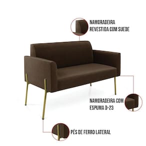 Todo mundo gosta de um ambiente bem decorado, e se for novidade melhor ainda não é mesmo? A D'Rossi, além de entregar beleza, qualidade e confiança aos clientes, ela dispõe das melhores opções em produtos, disponíveis no mercado! Portanto, se você quer um produto sofisticado, opte pelo Sofá Namoradeira 2 Lugares. Ele possui um design lindo e sofisticado, com pés de Ferro Lateral Dourado e revestimento em tecido Suede Marrom, que harmonizam com qualquer ambiente. Esta mobília fica perfeita na sala de estar, recepções, mesa de jantar ou qualquer outro espaço que você queira decorar com estilo e bom gosto. Ela contém uma estrutura em madeira de reflorestamento eucalipto, que garante a resistência e a sustentabilidade do produto. Ela suporta até 120 kg de peso, podendo ser utilizada por pessoas de diferentes biotipos. Ela tem um acabamento reforçado e espuma de qualidade D-23, garantindo flexibilidade e conforto ao usuário. O Sofá Namoradeira Marisa é um produto de alta qualidade, beleza e funcionalidade. Ele é fácil de transportar, pois tem um peso leve e um tamanho compacto. O Sofá Namoradeira 2 Lugares Marisa é ideal, para dar aquele realce que seu ambiente precisa. Tenho certeza que esse móvel é a melhor compra que você irá fazer. Garanta já seu Sofá Namoradeira Marisa e se acomode da melhor maneira possível! Dimensões do Sofá Namoradeira: Altura total: 81 cm Largura total: 114 cm Profundidade total: 64 cm Altura do encosto: 36 cm Largura do assento: 96 cm Profundidade do assento: 48 cm Altura do chão ao assento: 45 cm Espessura do assento: 18 cm Tamanho dos pés: 30 cm Espessura do braço: 9 cm Peso: 21 kg Especificações do Produto Estrutura: Madeira Eucalipto Espuma: D-23 Tecido: Suede Tipo de pés: Pés de Ferro Dourado Peso suportado: Até 120 Kg Garantia: 90 dias contra defeito de fabricação Montagem: O produto vai montado, apenas parafusar a base Instruções de limpeza: Utilizar um pano limpo e levemente úmido Você irá receber: 01 Sofá Namoradeira - Entregue em: 01 Volume