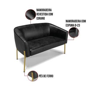 O Sofá Namoradeira 2 lugares Stella é uma peça que combina elegância, conforto e durabilidade. Este Sofá Namoradeira tem um design moderno e sofisticado, com pés de ferro lateral dourado e revestimento em tecido Corano Preto, que harmonizam com qualquer ambiente. Ele é ideal para sala de estar, recepções, mesa de jantar ou qualquer outro espaço que você queira decorar com estilo e bom gosto. Ele tem uma estrutura em madeira de reflorestamento eucalipto, que garante a resistência e a sustentabilidade do produto. Ele suporta até 120 kg de peso, podendo ser utilizado por pessoas de diferentes biotipos. Ele tem um acabamento reforçado e espuma de qualidade D23, que oferece maciez e aconchego. Tem pés em aço carbono e pintura eletrostática, que protegem o produto contra corrosão e desgaste. Ele tem assento com persintas elásticas, que proporcionam flexibilidade e conforto. O Sofá Namoradeira Stella é um produto de alta qualidade, beleza e funcionalidade. Ele é fácil de transportar, pois tem um peso leve e um tamanho compacto. O Sofá Namoradeira Stella é um produto que vai fazer a diferença na sua decoração e no seu bem-estar. Ele vai trazer charme, conforto e durabilidade para o seu ambiente. Aproveite essa oferta e leve para casa um Sofá Namoradeirade qualidade por um preço incrível. Essa é a sua chance de ter um sofá Namoradeira maravilhoso por um preço imperdível. Corra e garanta seu Sofá Namoradeira 2 lugares antes que acabe o estoque!