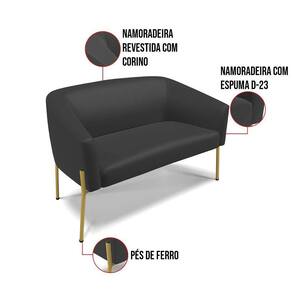 O Sofá Namoradeira 2 lugares Stella é uma peça que combina elegância, conforto e durabilidade. Este Sofá Namoradeira tem um design moderno e sofisticado, com pés de ferro lateral dourado e revestimento em tecido Corino Preto, que harmonizam com qualquer ambiente. Ele é ideal para sala de estar, recepções, mesa de jantar ou qualquer outro espaço que você queira decorar com estilo e bom gosto. Ele tem uma estrutura em madeira de reflorestamento eucalipto, que garante a resistência e a sustentabilidade do produto. Ele suporta até 120 kg de peso, podendo ser utilizado por pessoas de diferentes biotipos. Ele tem um acabamento reforçado e espuma de qualidade D23, que oferece maciez e aconchego. Tem pés em aço carbono e pintura eletrostática, que protegem o produto contra corrosão e desgaste. Ele tem assento com persintas elásticas, que proporcionam flexibilidade e conforto. O Sofá Namoradeira Stella é um produto de alta qualidade, beleza e funcionalidade. Ele é fácil de transportar, pois tem um peso leve e um tamanho compacto. O Sofá Namoradeira Stella é um produto que vai fazer a diferença na sua decoração e no seu bem-estar. Ele vai trazer charme, conforto e durabilidade para o seu ambiente. Aproveite essa oferta e leve para casa um Sofá Namoradeirade qualidade por um preço incrível. Essa é a sua chance de ter um sofá Namoradeira maravilhoso por um preço imperdível. Corra e garanta seu Sofá Namoradeira 2 lugares antes que acabe o estoque!
