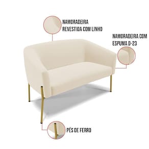 O Sofá Namoradeira 2 lugares Stella é uma peça que combina elegância, conforto e durabilidade. Este Sofá Namoradeira tem um design moderno e sofisticado, com pés de ferro lateral dourado e revestimento em tecido Linho Bege, que harmonizam com qualquer ambiente. Ele é ideal para sala de estar, recepções, mesa de jantar ou qualquer outro espaço que você queira decorar com estilo e bom gosto. Ele tem uma estrutura em madeira de reflorestamento eucalipto, que garante a resistência e a sustentabilidade do produto. Ele suporta até 120 kg de peso, podendo ser utilizado por pessoas de diferentes biotipos. Ele tem um acabamento reforçado e espuma de qualidade D23, que oferece maciez e aconchego. Tem pés em aço carbono e pintura eletrostática, que protegem o produto contra corrosão e desgaste. Ele tem assento com persintas elásticas, que proporcionam flexibilidade e conforto. O Sofá Namoradeira Stella é um produto de alta qualidade, beleza e funcionalidade. Ele é fácil de transportar, pois tem um peso leve e um tamanho compacto. O Sofá Namoradeira Stella é um produto que vai fazer a diferença na sua decoração e no seu bem-estar. Ele vai trazer charme, conforto e durabilidade para o seu ambiente. Aproveite essa oferta e leve para casa um Sofá Namoradeira de qualidade por um preço incrível. Essa é a sua chance de ter um sofá Namoradeira maravilhoso por um preço imperdível. Corra e garanta seu Sofá Namoradeira 2 lugares antes que acabe o estoque!