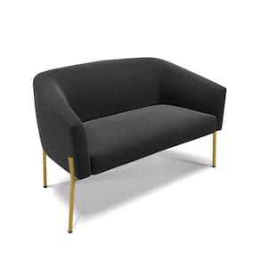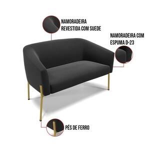 Sofá Namoradeira 2 Lugares Pé De Ferro Dourado Stella Suede D03 - D'rossi Cor Preto