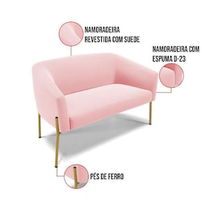 O Sofá Namoradeira 2 lugares Stella é uma peça que combina elegância, conforto e durabilidade. Este Sofá Namoradeira tem um design moderno e sofisticado, com pés de ferro lateral dourado e revestimento em tecido Suede Rosa Bebê, que harmonizam com qualquer ambiente. Ele é ideal para sala de estar, recepções, mesa de jantar ou qualquer outro espaço que você queira decorar com estilo e bom gosto. Ele tem uma estrutura em madeira de reflorestamento eucalipto, que garante a resistência e a sustentabilidade do produto. Ele suporta até 120 kg de peso, podendo ser utilizado por pessoas de diferentes biotipos. Ele tem um acabamento reforçado e espuma de qualidade D23, que oferece maciez e aconchego. Tem pés em aço carbono e pintura eletrostática, que protegem o produto contra corrosão e desgaste. Ele tem assento com persintas elásticas, que proporcionam flexibilidade e conforto. O Sofá Namoradeira Stella é um produto de alta qualidade, beleza e funcionalidade. Ele é fácil de transportar, pois tem um peso leve e um tamanho compacto. O Sofá Namoradeira Stella é um produto que vai fazer a diferença na sua decoração e no seu bem-estar. Ele vai trazer charme, conforto e durabilidade para o seu ambiente. Aproveite essa oferta e leve para casa um Sofá Namoradeira de qualidade por um preço incrível. Essa é a sua chance de ter um sofá Namoradeira maravilhoso por um preço imperdível. Corra e garanta seu Sofá Namoradeira 2 lugares antes que acabe o estoque!