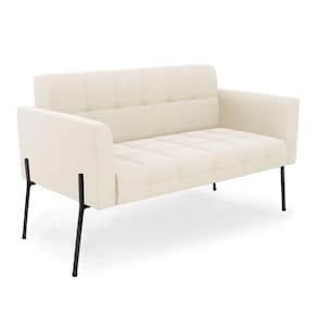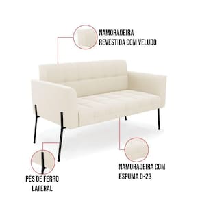 Você gosta de colecionar vários momentos memoráveis com sua família e amigos? Que tal recebê-los, com móveis de altíssima qualidade que só a D'Rossi tem? O Sofá Namoradeira Elisa é adequado para você! Seu design retrô é a grande tendência do momento. Pode ser utilizado em diversos espaços da casa, em salas, hall de entrada, quartos, cozinhas, varanda, sacada, escritório, dentre outros. Contém as seguintes características: A estrutura é feita Madeira de Eucalipto 100% de reflorestamento,Pés de Ferro Preto que além de ser resistente e durável, suporta em média até 120 kg. Assento, encosto e braços, contém enchimento de espuma D-23 e é estofada em tecido Veludo, na cor Bege, que oferece muito conforto e resistência ao sentar, com aquela sensação de maciez e aconchego. Possui também, detalhes de costura no encosto e assento, resultando em um acabamento impecável, conferindo muito mais valor e elegância ao seu espaço. Para complementar a decoração com esse lindo Sofá Namoradeira, a dica é utilizar mantas, almofadas ou vasinho de flor. E pronto, seu cantinho estará perfeito para descansar e relaxar! Aqui, você encontra várias opções, para que seus amigos e familiares se sintam acolhidos. Garanta já seu Sofá Namoradeira.