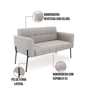 Você gosta de colecionar vários momentos memoráveis com sua família e amigos? Que tal recebê-los, com móveis de altíssima qualidade que só a D'Rossi tem? O Sofá Namoradeira Elisa é adequado para você! Seu design retrô é a grande tendência do momento. Pode ser utilizado em diversos espaços da casa, em salas, hall de entrada, quartos, cozinhas, varanda, sacada, escritório, dentre outros. Contém as seguintes características: A estrutura é feita Madeira de Eucalipto 100% de reflorestamento,Pés de Ferro Preto que além de ser resistente e durável, suporta em média até 120 kg. Assento, encosto e braços, contém enchimento de espuma D-23 e é estofada em tecido Veludo, que oferece muito conforto e resistência ao sentar, com aquela sensação de maciez e aconchego. Possui também, detalhes de costura no encosto e assento, resultando em um acabamento impecável, conferindo muito mais valor e elegância ao seu espaço. Para complementar a decoração com esse lindo Sofá Namoradeira, a dica é utilizar mantas, almofadas ou vasinho de flor. E pronto, seu cantinho estará perfeito para descansar e relaxar! Aqui, você encontra várias opções, para que seus amigos e familiares se sintam acolhidos. Garanta já seu Sofá Namoradeira.