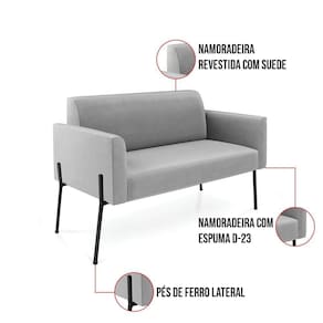 Todo mundo gosta de um ambiente bem decorado, e se for novidade melhor ainda não é mesmo? A D'Rossi, além de entregar beleza, qualidade e confiança aos clientes, ela dispõe das melhores opções em produtos, disponíveis no mercado! Portanto, se você quer um produto sofisticado, opte pelo Sofá Namoradeira 2 Lugares. Ele possui um design lindo e sofisticado, com pés de Ferro Lateral Preto e revestimento em tecido Suede Cinza, que harmonizam com qualquer ambiente. Esta mobília fica perfeita na sala de estar, recepções, mesa de jantar ou qualquer outro espaço que você queira decorar com estilo e bom gosto. Ela contém uma estrutura em madeira de reflorestamento eucalipto, que garante a resistência e a sustentabilidade do produto. Ela suporta até 120 kg de peso, podendo ser utilizada por pessoas de diferentes biotipos. Ela tem um acabamento reforçado e espuma de qualidade D-23, garantindo flexibilidade e conforto ao usuário. O Sofá Namoradeira Marisa é um produto de alta qualidade, beleza e funcionalidade. Ele é fácil de transportar, pois tem um peso leve e um tamanho compacto. O Sofá Namoradeira 2 Lugares Marisa é ideal, para dar aquele realce que seu ambiente precisa. Tenho certeza que esse móvel é a melhor compra que você irá fazer. Garanta já seu Sofá Namoradeira Marisa e se acomode da melhor maneira possível!