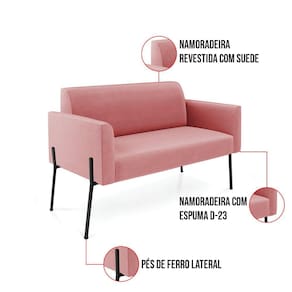 Todo mundo gosta de um ambiente bem decorado, e se for novidade melhor ainda não é mesmo? A D'Rossi, além de entregar beleza, qualidade e confiança aos clientes, ela dispõe das melhores opções em produtos, disponíveis no mercado! Portanto, se você quer um produto sofisticado, opte pelo Sofá Namoradeira 2 Lugares. Ele possui um design lindo e sofisticado, com pés de Ferro Lateral Preto e revestimento em tecido Suede Rosê, que harmonizam com qualquer ambiente. Esta mobília fica perfeita na sala de estar, recepções, mesa de jantar ou qualquer outro espaço que você queira decorar com estilo e bom gosto. Ela contém uma estrutura em madeira de reflorestamento eucalipto, que garante a resistência e a sustentabilidade do produto. Ela suporta até 120 kg de peso, podendo ser utilizada por pessoas de diferentes biotipos. Ela tem um acabamento reforçado e espuma de qualidade D-23, garantindo flexibilidade e conforto ao usuário. O Sofá Namoradeira Marisa é um produto de alta qualidade, beleza e funcionalidade. Ele é fácil de transportar, pois tem um peso leve e um tamanho compacto. O Sofá Namoradeira 2 Lugares Marisa é ideal, para dar aquele realce que seu ambiente precisa. Tenho certeza que esse móvel é a melhor compra que você irá fazer. Garanta já seu Sofá Namoradeira Marisa e se acomode da melhor maneira possível!