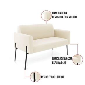 Todo mundo gosta de um ambiente bem decorado, e se for novidade melhor ainda não é mesmo? A D'Rossi, além de entregar beleza, qualidade e confiança aos clientes, ela dispõe das melhores opções em produtos, disponíveis no mercado! Portanto, se você quer um produto sofisticado, opte pelo Sofá Namoradeira 2 Lugares. Ele possui um design lindo e sofisticado, com pés de Ferro Lateral Preto e revestimento em tecido Veludo, que harmonizam com qualquer ambiente. Esta mobília fica perfeita na sala de estar, recepções, mesa de jantar ou qualquer outro espaço que você queira decorar com estilo e bom gosto. Ela contém uma estrutura em madeira de reflorestamento eucalipto, que garante a resistência e a sustentabilidade do produto. Ela suporta até 120 kg de peso, podendo ser utilizada por pessoas de diferentes biotipos. Ela tem um acabamento reforçado e espuma de qualidade D-23, garantindo flexibilidade e conforto ao usuário. O Sofá Namoradeira Marisa é um produto de alta qualidade, beleza e funcionalidade. Ele é fácil de transportar, pois tem um peso leve e um tamanho compacto. O Sofá Namoradeira 2 Lugares Marisa é ideal, para dar aquele realce que seu ambiente precisa. Tenho certeza que esse móvel é a melhor compra que você irá fazer. Garanta já seu Sofá Namoradeira Marisa e se acomode da melhor maneira possível!