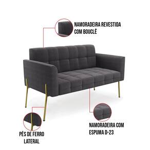 O Sofá Namoradeira 2 Lugares Elisa é uma mobília que combina elegância, conforto e durabilidade. Ele tem um design retrô e sofisticado, com Pés Laterais de Ferro Dourado e revestimento em tecido Bouclê Grafite, que harmonizam com qualquer ambiente. Ele é ideal para sala de estar, recepções, escritórios, cozinhas ou qualquer outro espaço que você queira decorar com estilo e bom gosto. Ele tem uma estrutura em madeira de reflorestamento eucalipto, que garante a resistência e a sustentabilidade do produto. Ele suporta até 180 kg de peso, podendo ser utilizada por pessoas de diferentes biotipos. Ele tem um acabamento reforçado e espuma de qualidade D23, que oferece maciez e aconchego. Ele contém detalhes de costura no encosto e assento, resultando em um acabamento impecável, conferindo muito mais valor e elegância ao produto. O Sofá Namoradeira Elisa é um móvel de alta qualidade, beleza e funcionalidade. Ele é fácil de transportar, pois tem um peso leve e um tamanho compacto. O Sofá Namoradeira Elisa é um produto que vai fazer a diferença na sua decoração e no seu bem-estar. Ele vai trazer charme, conforto e durabilidade para o seu ambiente. Aproveite essa oferta e leve para casa um Sofá Namoradeira de qualidade por um preço incrível. Essa é a sua chance de ter um Sofá Namoradeira maravilhoso por um preço imperdível. Corra e garanta o seu antes que acabe o estoque!
