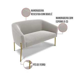 Sofá Namoradeira 2 Lugares Pé Ferro Dourado Stella Bouclê D03 - D'rossi Cor Cinza