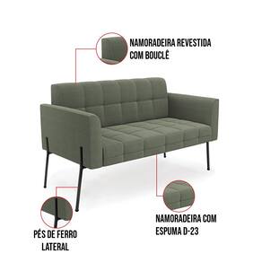O Sofá Namoradeira 2 Lugares Elisa é uma mobília que combina elegância, conforto e durabilidade. Ele tem um design retrô e sofisticado, com Pés Laterais de Ferro Preto e revestimento em tecido Bouclê. Ele é ideal para sala de estar, recepções, escritórios, cozinhas ou qualquer outro espaço que você queira decorar com estilo e bom gosto. Ele tem uma estrutura em madeira de reflorestamento eucalipto, que garante a resistência e a sustentabilidade do produto. Ele suporta até 180 kg de peso, podendo ser utilizada por pessoas de diferentes biotipos. Ele tem um acabamento reforçado e espuma de qualidade D23, que oferece maciez e aconchego. Ele contém detalhes de costura no encosto e assento, resultando em um acabamento impecável, conferindo muito mais valor e elegância ao produto. O Sofá Namoradeira Elisa é um móvel de alta qualidade, beleza e funcionalidade. Ele é fácil de transportar, pois tem um peso leve e um tamanho compacto. O Sofá Namoradeira Elisa é um produto que vai fazer a diferença na sua decoração e no seu bem-estar. Ele vai trazer charme, conforto e durabilidade para o seu ambiente. Aproveite essa oferta e leve para casa um Sofá Namoradeira de qualidade por um preço incrível. Essa é a sua chance de ter um Sofá Namoradeira maravilhoso por um preço imperdível. Corra e garanta o seu antes que acabe o estoque!