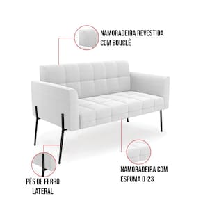 O Sofá Namoradeira 2 Lugares Elisa é uma mobília que combina elegância, conforto e durabilidade. Ele tem um design retrô e sofisticado, com Pés Laterais de Ferro Preto e revestimento em tecido Bouclê Off White, que harmonizam com qualquer ambiente. Ele é ideal para sala de estar, recepções, escritórios, cozinhas ou qualquer outro espaço que você queira decorar com estilo e bom gosto. Ele tem uma estrutura em madeira de reflorestamento eucalipto, que garante a resistência e a sustentabilidade do produto. Ele suporta até 180 kg de peso, podendo ser utilizada por pessoas de diferentes biotipos. Ele tem um acabamento reforçado e espuma de qualidade D23, que oferece maciez e aconchego. Ele contém detalhes de costura no encosto e assento, resultando em um acabamento impecável, conferindo muito mais valor e elegância ao produto. O Sofá Namoradeira Elisa é um móvel de alta qualidade, beleza e funcionalidade. Ele é fácil de transportar, pois tem um peso leve e um tamanho compacto. O Sofá Namoradeira Elisa é um produto que vai fazer a diferença na sua decoração e no seu bem-estar. Ele vai trazer charme, conforto e durabilidade para o seu ambiente. Aproveite essa oferta e leve para casa um Sofá Namoradeira de qualidade por um preço incrível. Essa é a sua chance de ter um Sofá Namoradeira maravilhoso por um preço imperdível. Corra e garanta o seu antes que acabe o estoque!