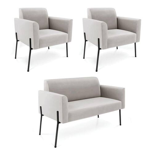 Você irá receber: 01 Sofá Namoradeira e 02 Poltronas - Entregue em 03 Volumes