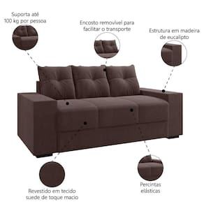 MEDIDAS:: A = 80 cm L = 170 cm P = 75 cm | PESO:: 45 Kg | PESO SUPORTADO:: 100 Kg Por Assento | MODELO:: Sofá 1,70m 3 Lugares Ibiza Namoradeira Suede | MARCA:: Selmer | TECIDO:: Suede | PERCINTAS:: Elásticas | MATERIAL DA ESTRUTURA:: Madeira de Eucalipto | MATERIAL DO ASSENTO:: Espuma | DENSIDADE DE ESPUMA DO ASSENTO:: D23 | QUANTIDADE DE LUGARES:: 3 | MATERIAL DO ENCOSTO:: Almofadas com Fibras e Flocos | POSSUI ENCOSTO REMOVÍVEL:: Sim | BRAÇOS:: Fibras e Flocos | DENSIDADE DE ESPUMA DO BRAÇO:: D20 | PÉS:: Em PVC | POSSUI RODÍZIOS:: Não | VALE A PENA SABER:: A tonalidade de cor pode variar de acordo com o lote do fabricante. | CONTEÚDO DA EMBALAGEM:: 2 Volumes | GARANTIA:: 3 Meses | AVISO:: A Esplanada Móveis se responsabiliza pela entrega dos produtos adquiridos até a porta de entrada ou portaria do endereço indicado, se a portaria do condomínio permitir, as entregas são efetuadas no piso térreo e é de responsabilidade do cliente. | Altura: 80 | É com chaise: não | É de canto: não | É reclinável: não | É sofá-cama: não | Inclui manual de montagem: sim | Largura: 170 | Profundidade: 75 | Quantidade de caixas de embalagem: 2 | Quantidade de lugares: 3 | Cor: Marrom
