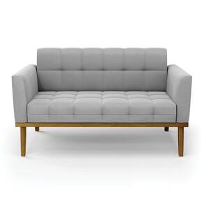 Sofá Namoradeira Base de Madeira Castanho Elisa Suede D03 - D`Rossi - Cinza