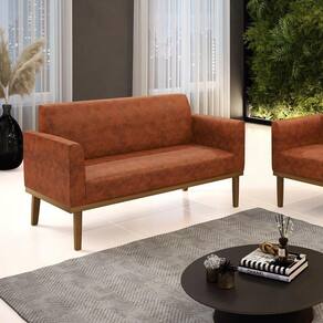 Sofá Namoradeira Base De Madeira Fixa Castanho Marisa Corano D03 - D?rossi Cor Nozes
