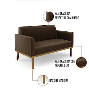 Sofá Namoradeira Base De Madeira Fixa Castanho Marisa Suede D03 - D?rossi Cor Marrom