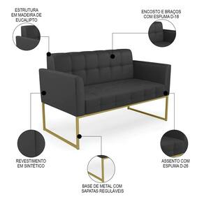 Querida por muitos pela beleza e conforto que proporciona, sua versatilidade dá a liberdade de poder usar na sua Sala De Estar, recepção e onde mais desejar! Você vai adorar o Sofá Namoradeira Base Industrial Dourado Ana Sintético Preto, da Ibiza!