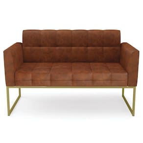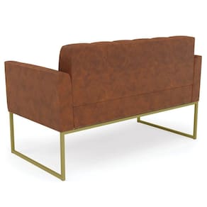 Querida por muitos pela beleza e conforto que proporciona, sua versatilidade dá a liberdade de poder usar na sua Sala De Estar, recepção e onde mais desejar! Você vai adorar o Sofá Namoradeira Base Industrial Dourado Ana Sintético PU Nozes, da Ibiza!