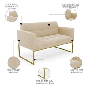 Querida por muitos pela beleza e conforto que proporciona, sua versatilidade dá a liberdade de poder usar na sua Sala De Estar, recepção e onde mais desejar! Você vai adorar o Sofá Namoradeira Base Industrial Dourado Ana Suede Bege, da Ibiza!