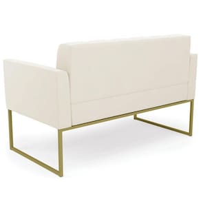 Querida por muitos pela beleza e conforto que proporciona, sua versatilidade dá a liberdade de poder usar na sua Sala De Estar, recepção e onde mais desejar! Você vai adorar o Sofá Namoradeira Base Industrial Dourado Ana Veludo Bege, da Ibiza!