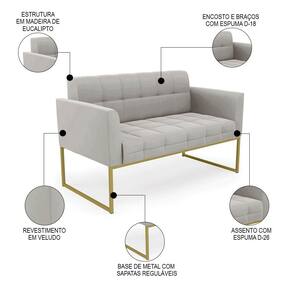 Querida por muitos pela beleza e conforto que proporciona, sua versatilidade dá a liberdade de poder usar na sua Sala De Estar, recepção e onde mais desejar! Você vai adorar o Sofá Namoradeira Base Industrial Dourado Ana Veludo Cinza, da Ibiza!