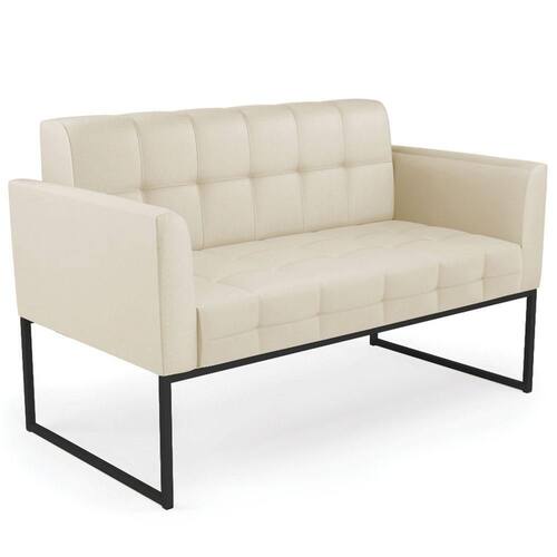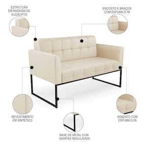 Querida por muitos pela beleza e conforto que proporciona, sua versatilidade dá a liberdade de poder usar na sua Sala De Estar, recepção e onde mais desejar! Você vai adorar o Sofá Namoradeira Base Industrial Preto Ana Sintético Bege, da Ibiza!