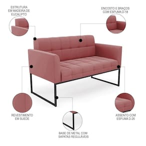 Querida por muitos pela beleza e conforto que proporciona, sua versatilidade dá a liberdade de poder usar na sua Sala De Estar, recepção e onde mais desejar! Você vai adorar o Sofá Namoradeira Base Industrial Preto Ana Suede Rosê, da Ibiza!