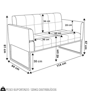 Esta Namoradeira é revestida em Veludo, que é durável e fácil de limpar, e ainda valoriza o design do sofá. Os braços e encosto são confortáveis em espuma D-18, já o assento é com espuma D-26 de alta densidade, que garante um assento firme e aconchegante, ideal para relaxar após um dia cansativo. A base industrial é um charme à parte, que confere um toque Moderno e sofisticado à peça. O Sofá Namoradeira tem uma estrutura resistente e suporta até 120 kg. A montagem é muito simples, pois ela já vem pronta, bastando apenas fixar a base com os parafusos que acompanham o produto. A limpeza também é muito prática, pois basta utilizar um pano limpo e levemente úmido, sem produtos abrasivos, para manter a sua Namoradeira sempre em bom estado. Sem dúvidas essa Namoradeira 2 Lugares, vai transformar a sua sala em um ambiente mais confortável e estiloso!