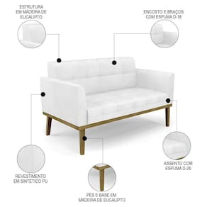 Querida por muitos pela beleza e conforto que proporciona, sua versatilidade dá a liberdade de poder usar na sua Sala De Estar, recepção e onde mais desejar! Você vai adorar o Sofá Namoradeira Base Madeira Castanho Ana Sintético PU Branco, da Ibiza!