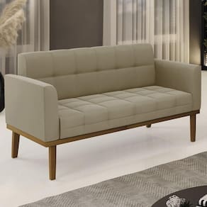 Esta Namoradeira é revestida em Suede, que é durável e fácil de limpar, e ainda valoriza o design do sofá. Os braços e encosto são confortáveis em espuma D-18, já o assento é com espuma D-26 de alta densidade, que garante um assento firme e aconchegante, ideal para relaxar após um dia cansativo. A base em madeira de eucalipto é um charme à parte, que confere um toque Rústico e sofisticado à peça. O Sofá Namoradeira tem uma estrutura resistente e suporta até 120 kg. A montagem é muito simples, pois ela já vem pronta, bastando apenas fixar a base com os parafusos que acompanham o produto. A limpeza também é muito prática, pois basta utilizar um pano limpo e levemente úmido, sem produtos abrasivos, para manter a sua Namoradeira sempre em bom estado. Sem dúvidas essa Namoradeira 2 Lugares, vai transformar a sua sala em um ambiente mais confortável e estiloso!