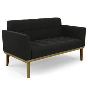Querida por muitos pela beleza e conforto que proporciona, sua versatilidade dá a liberdade de poder usar na sua Sala De Estar, recepção e onde mais desejar! Você vai adorar o Sofá Namoradeira Base Madeira Castanho Ana Suede Preto, da Ibiza!