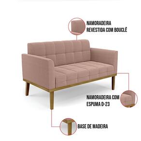 Sofá Namoradeira Base Madeira Fixa Castanho Elisa Bouclê D03 - D`Rossi - Rosê