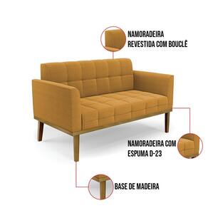 O Sofá Namoradeira 2 Lugares Elisa é uma mobília que combina elegância, conforto e durabilidade. Ele tem um design retrô e sofisticado, com Base de Madeira Fixa Castanho e revestimento em tecido Bouclê Mostarda, que harmonizam com qualquer ambiente. Ele é ideal para sala de estar, recepções, escritórios, cozinhas ou qualquer outro espaço que você queira decorar com estilo e bom gosto. Ele tem uma estrutura em madeira de reflorestamento eucalipto, que garante a resistência e a sustentabilidade do produto. Ele suporta até 180 kg de peso, podendo ser utilizada por pessoas de diferentes biotipos. Ele tem um acabamento reforçado e espuma de qualidade D23, que oferece maciez e aconchego. Ele contém detalhes de costura no encosto e assento, resultando em um acabamento impecável, conferindo muito mais valor e elegância ao produto. O Sofá Namoradeira Elisa é um móvel de alta qualidade, beleza e funcionalidade. Ele é fácil de transportar, pois tem um peso leve e um tamanho compacto. O Sofá Namoradeira Elisa é um produto que vai fazer a diferença na sua decoração e no seu bem-estar. Ele vai trazer charme, conforto e durabilidade para o seu ambiente. Aproveite essa oferta e leve para casa um Sofá Namoradeira de qualidade por um preço incrível. Essa é a sua chance de ter um Sofá Namoradeira maravilhoso por um preço imperdível. Corra e garanta o seu antes que acabe o estoque!