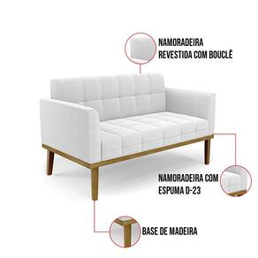 O Sofá Namoradeira 2 Lugares Elisa é uma mobília que combina elegância, conforto e durabilidade. Ele tem um design retrô e sofisticado, com Base de Madeira Fixa Castanho e revestimento em tecido Bouclê Off White, que harmonizam com qualquer ambiente. Ele é ideal para sala de estar, recepções, escritórios, cozinhas ou qualquer outro espaço que você queira decorar com estilo e bom gosto. Ele tem uma estrutura em madeira de reflorestamento eucalipto, que garante a resistência e a sustentabilidade do produto. Ele suporta até 180 kg de peso, podendo ser utilizada por pessoas de diferentes biotipos. Ele tem um acabamento reforçado e espuma de qualidade D23, que oferece maciez e aconchego. Ele contém detalhes de costura no encosto e assento, resultando em um acabamento impecável, conferindo muito mais valor e elegância ao produto. O Sofá Namoradeira Elisa é um móvel de alta qualidade, beleza e funcionalidade. Ele é fácil de transportar, pois tem um peso leve e um tamanho compacto. O Sofá Namoradeira Elisa é um produto que vai fazer a diferença na sua decoração e no seu bem-estar. Ele vai trazer charme, conforto e durabilidade para o seu ambiente. Aproveite essa oferta e leve para casa um Sofá Namoradeira de qualidade por um preço incrível. Essa é a sua chance de ter um Sofá Namoradeira maravilhoso por um preço imperdível. Corra e garanta o seu antes que acabe o estoque!
