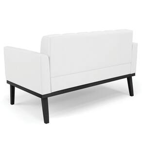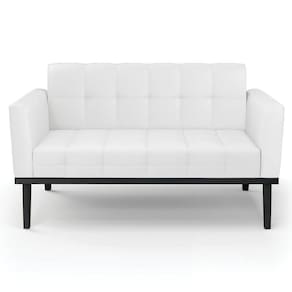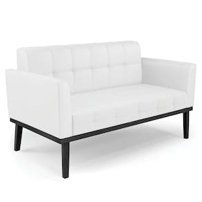 Querida por muitos pela beleza e conforto que proporciona, sua versatilidade dá a liberdade de poder usar na sua Sala De Estar, recepção e onde mais desejar! Você vai adorar o Sofá Namoradeira Base Madeira Preto Ana Sintético Branco, da Ibiza!
