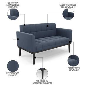 Querida por muitos pela beleza e conforto que proporciona, sua versatilidade dá a liberdade de poder usar na sua Sala De Estar, recepção e onde mais desejar! Você vai adorar o Sofá Namoradeira Base Madeira Preto Ana Suede Azul Marinho, da Ibiza!